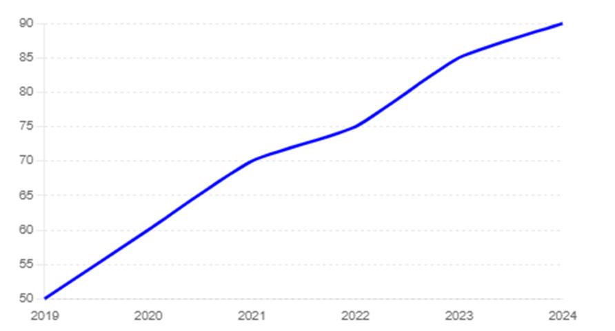 The recognition results in terms of team energy and meaningful work done have been depicted from 2019 to 2024. Based on the data, it is quite evident that there has been growing enthusiasm and appreciation from the teams, along with a more effective perception of accomplishing worthwhile work over the last five years.