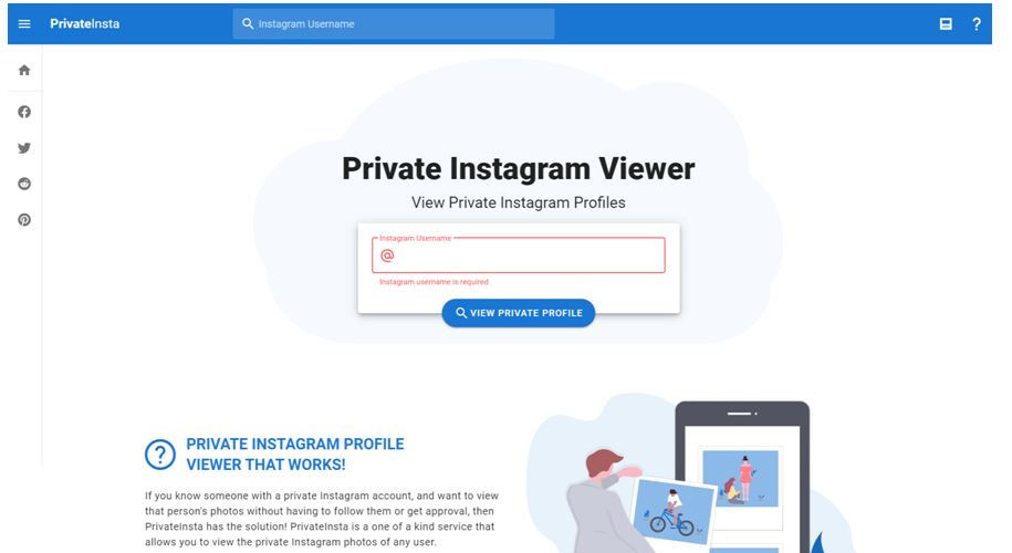 PrivateInsta is another good service to view someone’s Instagram private account photos, but human verification is required. Same as with Glassagram, no installation is needed, as the tool works in an online format, which means that it has great compatibility with all modern devices.