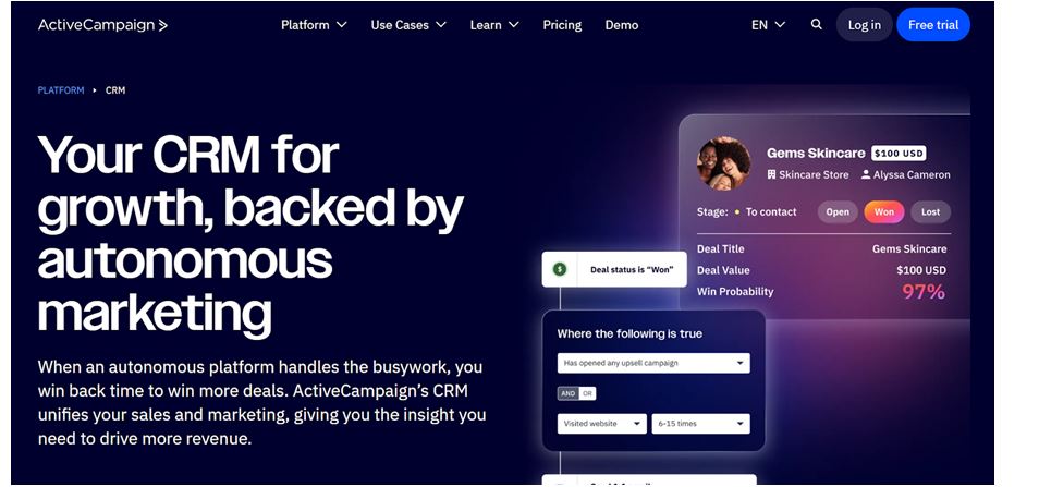 ActiveCampaign is known for blending marketing automation with CRM features in a way that appeals to users ready to invest in detailed customer journeys. Its tools feel well-suited for businesses that want to use behavior-based triggers and deeply personalized sequences. While the platform requires a bit more time to learn, many users appreciate the level of control it offers. For organizations that rely heavily on automation, ActiveCampaign often feels like a natural choice.