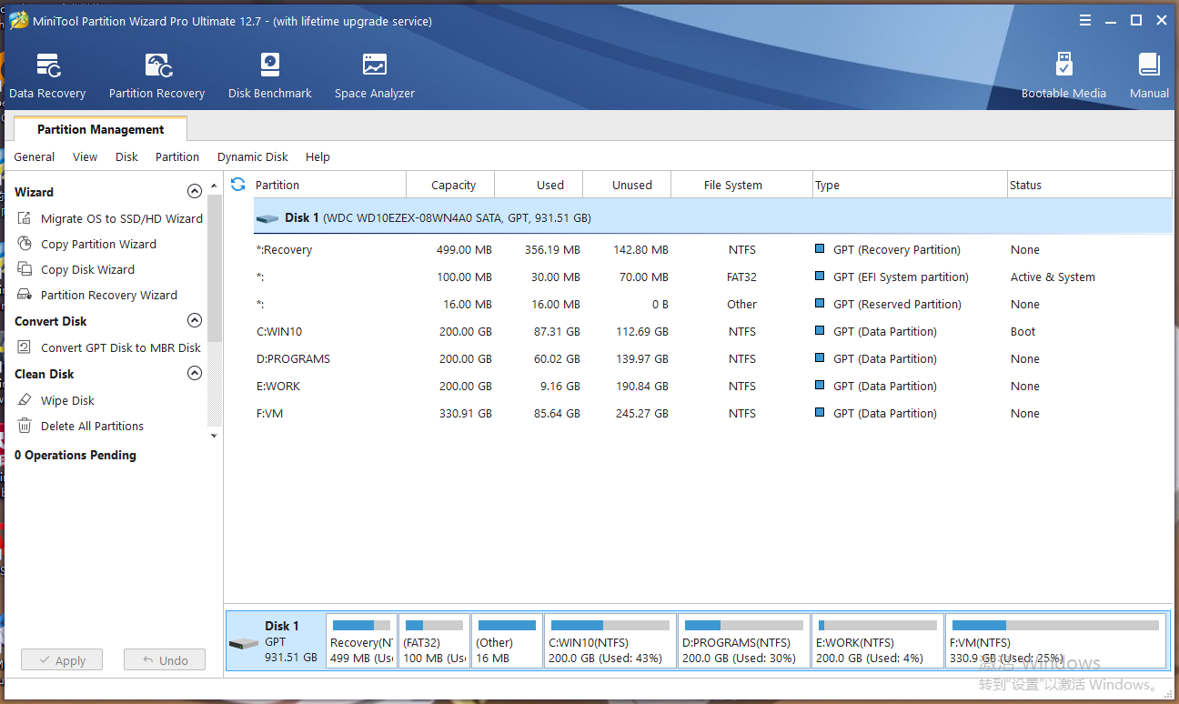 The straightforward and user-friendly interface of MiniTool Partition Wizard is one of its best qualities. Users are welcomed by a clear and structured interface when the software first launches, making it simple to browse through the numerous tools and capabilities. Users can easily access and manage their storage devices thanks to the main dashboard’s comprehensive overview of all connected drives and partitions.
