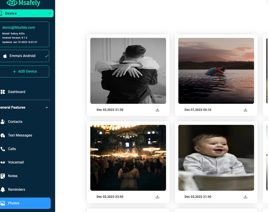 Msafely lets you see all photos and videos on the target phone, including downloaded, shared and received images and videos. This makes it very useful for parents who have to track their children’s online activities.