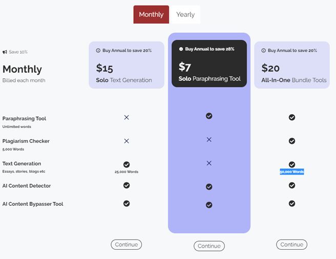 ParaphrasingTool.ai’s pricing model is crystal-clear and designed to fit your unique needs, so you only pay for the features you actually use. No more shelling out for bells and whistles you don’t need!