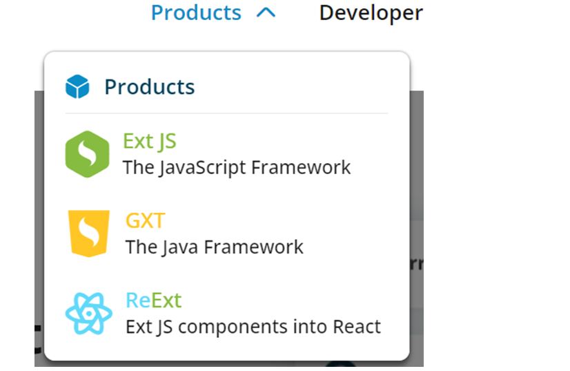 1) Open the Sencha website at https://www.sencha.com/ and click on the Products dropdown.